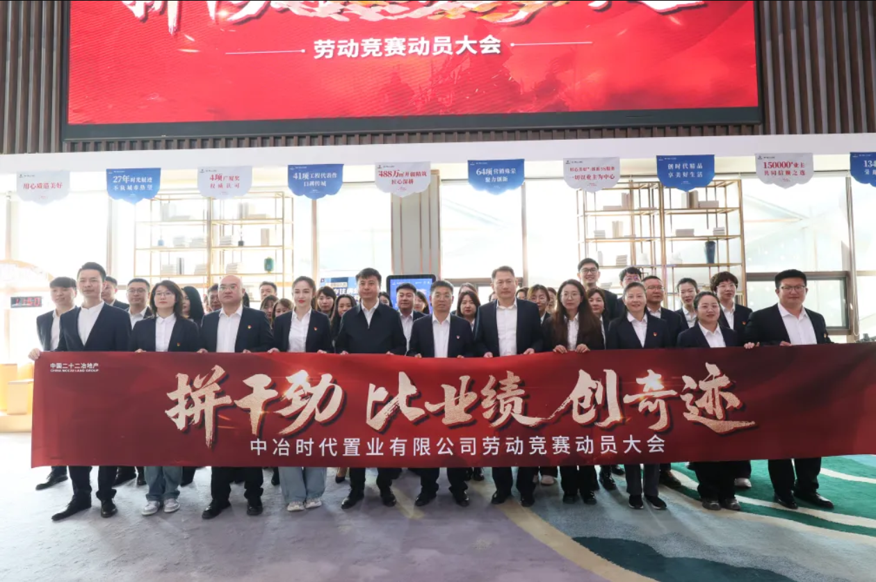 4月15日,時代置業公司舉行“拼干勁  比業績  創奇跡”勞動競賽動員大會,旨在以勞動競賽為抓手,激發全員攻堅熱情,加快公司資金回籠。本次競賽既是團隊齊心沖刺、攻堅克難的集結號角,更是攜手并肩、誓奪全勝的團結號令。中國二十二冶集團副總會計師、時代置業公司黨委書記、總經理姚信福作動員講話,時代置業公司副總經理、代理工會主席呂嚴宣讀《勞動競賽實施方案》并與豐潤項目、梧桐項目營銷負責人簽署軍令狀,時代置業公司營銷策劃部部長石慧主持大會儀式。