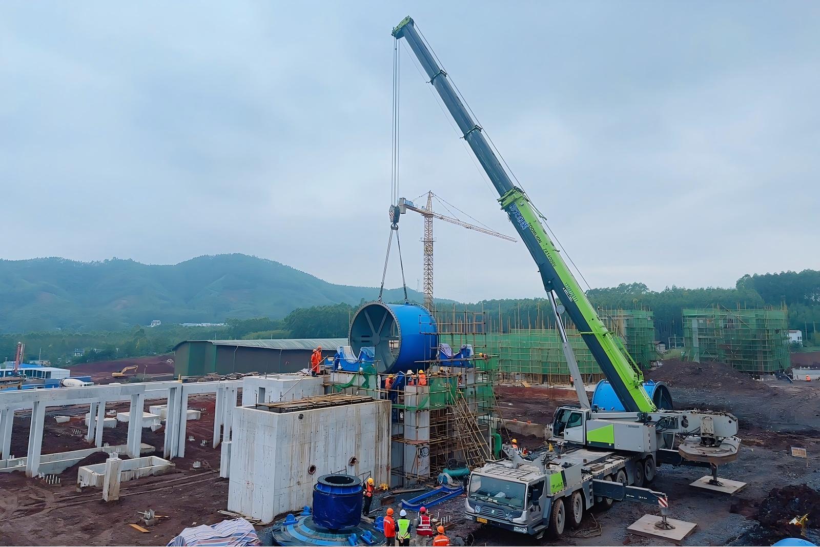 此次吊裝的球磨機(jī)是磨浮車間的核心設(shè)備,設(shè)備自重極大,首件筒體吊裝,基座調(diào)平精度是0.08毫米,對(duì)精度要求極高,哪怕是一絲一毫的偏差都可能影響未來整個(gè)磨浮系統(tǒng)的運(yùn)行效率。面對(duì)挑戰(zhàn),項(xiàng)目團(tuán)隊(duì)提前數(shù)月籌備,從路線勘察、方案優(yōu)化到協(xié)同演練,反復(fù)打磨每個(gè)環(huán)節(jié)。現(xiàn)場吊裝過程中,各崗位人員密切配合,確保這一“鋼鐵巨無霸”順利完成“絲滑”安家。