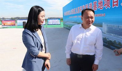中國二十二冶集團董事長、黨委書記袁斯浪與北京九天微星科技發(fā)展有限公司聯(lián)合創(chuàng)始人、總裁彭媛媛在開工儀式現(xiàn)場談話