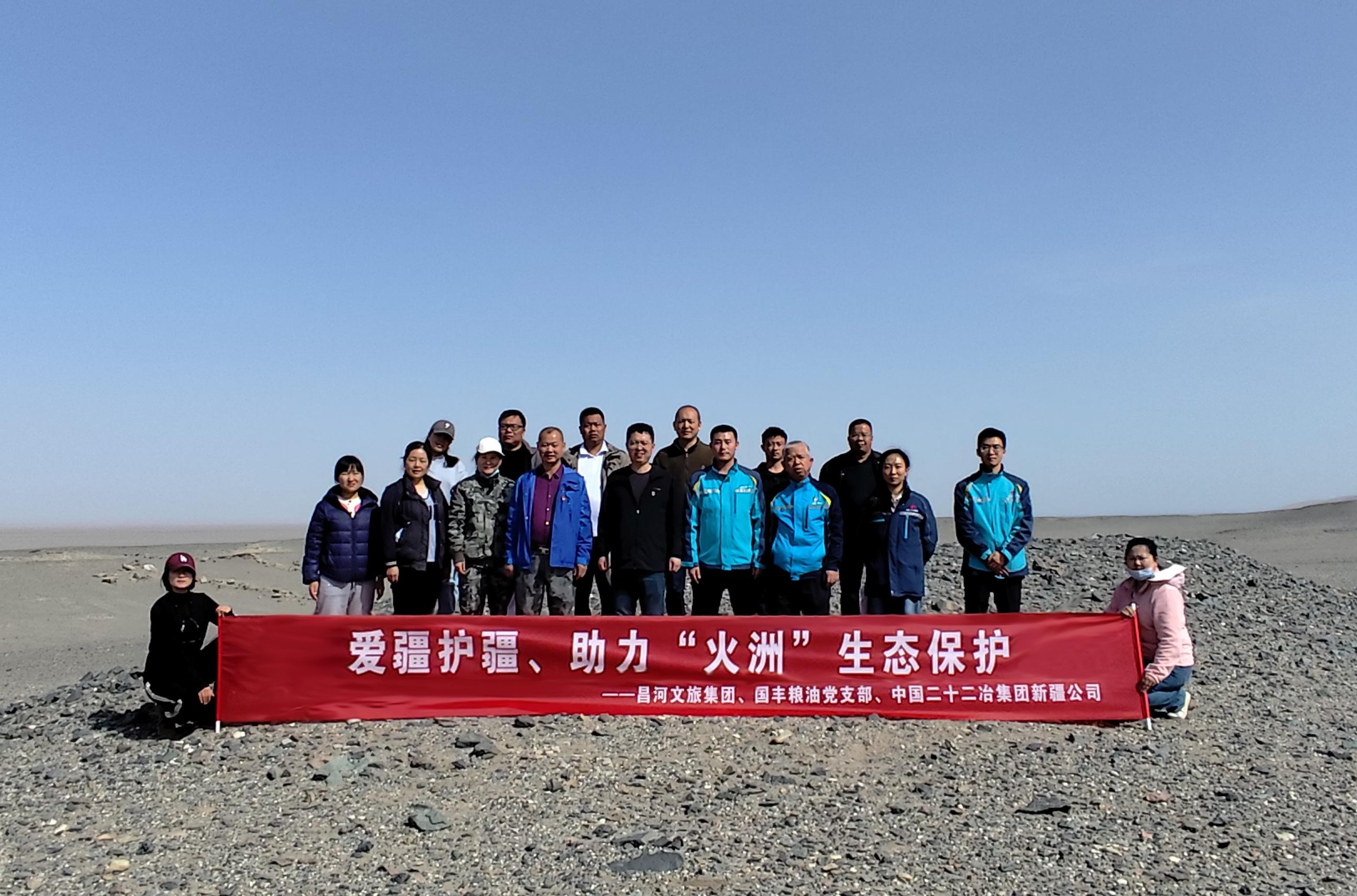 為深入貫徹落實黨的二十大精神,踐行“綠水青山就是金山銀山”的生態理念,近日,新疆公司吐魯番項目聯合昌河文旅集團、國豐糧油公司共同開展“愛疆護疆、助力‘火洲’生態保護”志愿服務活動。