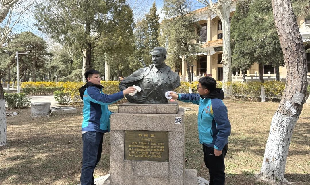 活動過程中,志愿者們滿懷敬意,分發好掃帚、抹布、垃圾袋等清潔工具后,大家迅速投入到清掃工作中。盡管天氣有些悶熱,但沒人有絲毫抱怨,有的志愿者認真清掃著道路上的落葉和雜物,有的仔細擦拭著烈士墓碑,還有的對紀念堂的展柜進行清潔。經過幾個小時的努力,烈士陵園煥然一新。干凈整潔的道路、一塵不染的墓碑,讓整個陵園顯得更加莊嚴肅穆。