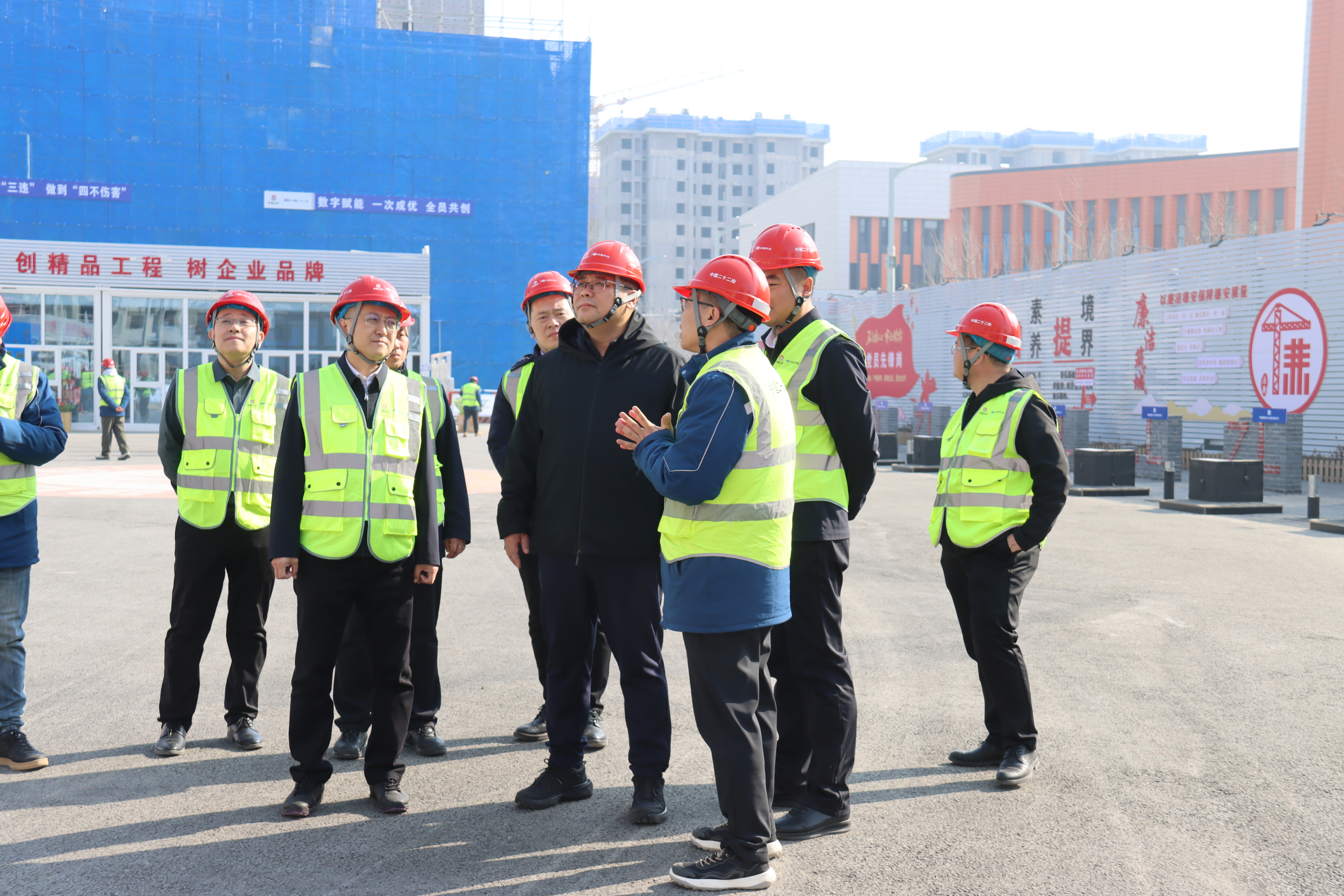 2月13日,中國二十二冶黨委副書記、總經(jīng)理慈國強(qiáng)先后到雄安創(chuàng)新坊住宅項(xiàng)目、公建項(xiàng)目、青藤小鎮(zhèn)項(xiàng)目、綜保物流項(xiàng)目走訪慰問,帶班檢查春節(jié)期間施工情況,向春節(jié)期間堅(jiān)守一線的建設(shè)者致以新春祝福。